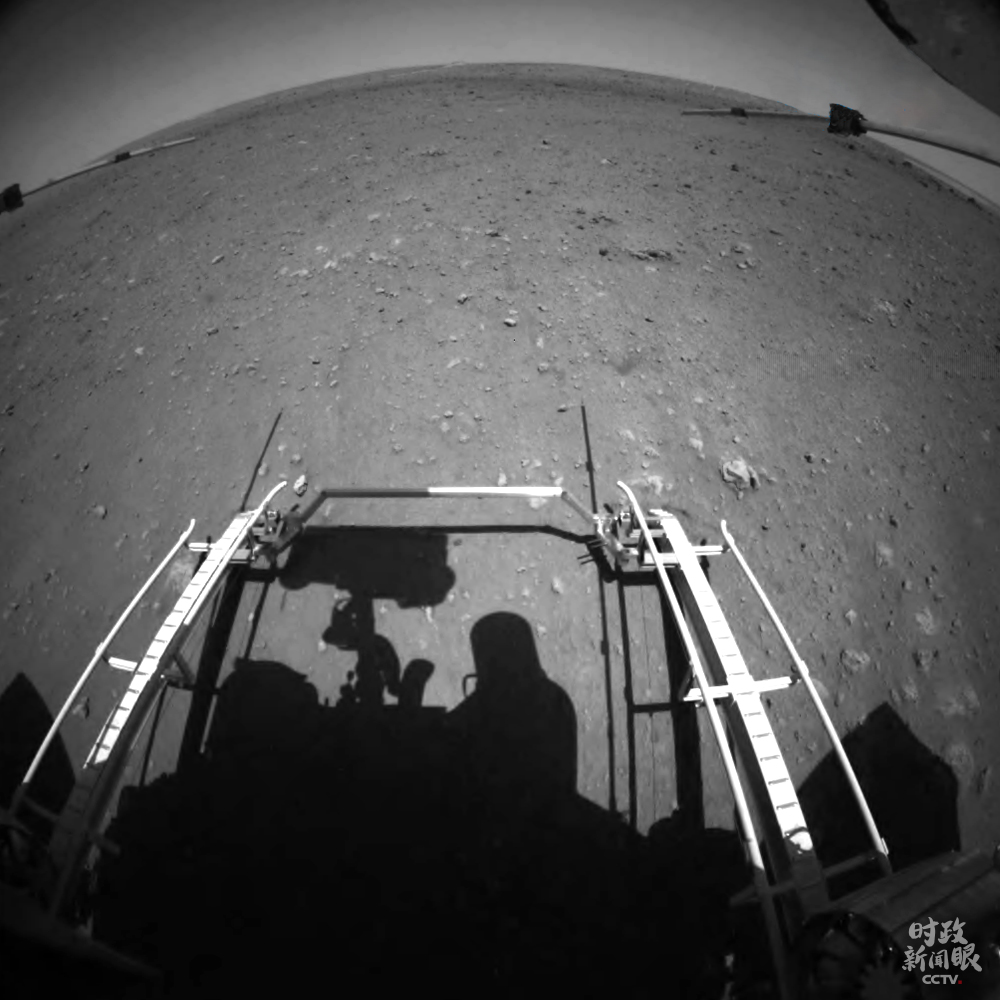 △2021年5月22日,“祝融號(hào)”火星車安全駛離著陸平臺(tái),到達(dá)火星表面,開(kāi)始巡視探測(cè)。(圖/國(guó)家航天局)