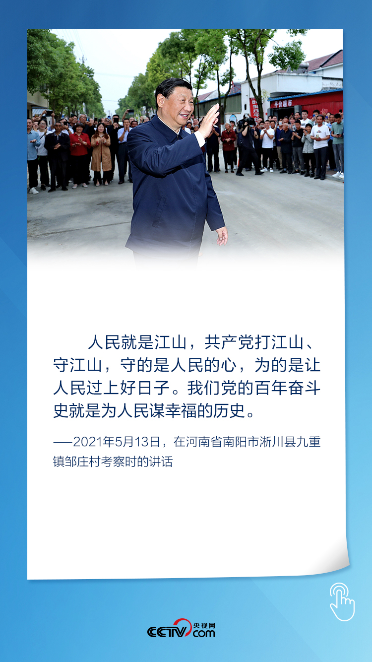 5月南陽之行,總書記馬不停蹄,了解中醫(yī)藥傳承創(chuàng)新、關心夏糧生產、考察南水北調移民村產業(yè)發(fā)展、主持召開推進南水北調后續(xù)工程高質量發(fā)展座談會,根本目的是為了讓人民過上更好的日子。“我們黨的百年奮斗史就是為人民謀幸福的歷史”,在建黨百年這個特殊年份,總書記如此高頻次到地方考察,用實際行動詮釋著黨的初心和使命。