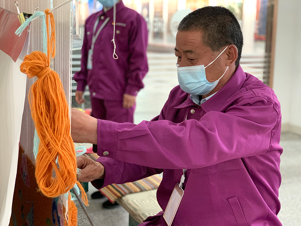△楊永良是第七代加牙藏族織毯技藝非遺傳承人。(總臺(tái)央視記者楊松濤、邢彬拍攝)