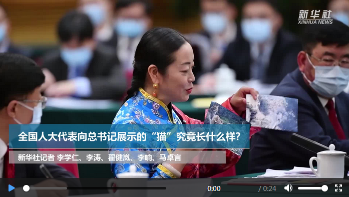 3月7日下午,人民大會(huì)堂東大廳,青海代表團(tuán)審議現(xiàn)場(chǎng),孔慶菊代表拿出照片,請(qǐng)坐在對(duì)面的習(xí)近平總書記觀看。一張照片中,是漫步在草叢中的荒漠貓;另一張,則是行走在樹叢中的雪豹。“以前很少見的珍稀物種,現(xiàn)在頻頻現(xiàn)身了。”孔慶菊說。