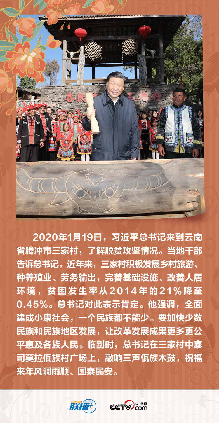 黨的十八大以來,總書記多次深入少數(shù)民族地區(qū)考察,足跡遍及祖國北疆、西南邊陲、雪域高原、天山南北,他頻頻強調(diào)“一個民族都不能少”這個莊嚴(yán)承諾。