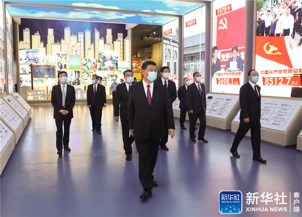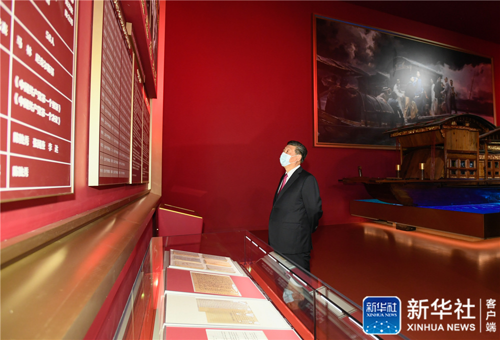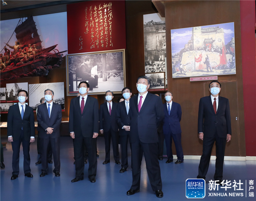 6月18日,黨和國家領(lǐng)導(dǎo)人習(xí)近平、李克強、栗戰(zhàn)書、汪洋、王滬寧、趙樂際、韓正、王岐山等在中國共產(chǎn)黨歷史展覽館參觀“‘不忘初心、牢記使命’中國共產(chǎn)黨歷史展覽”。這是習(xí)近平在參觀展覽。新華社記者 李學(xué)仁 攝