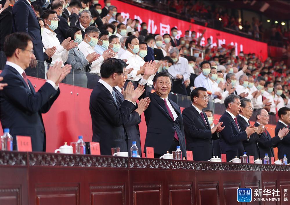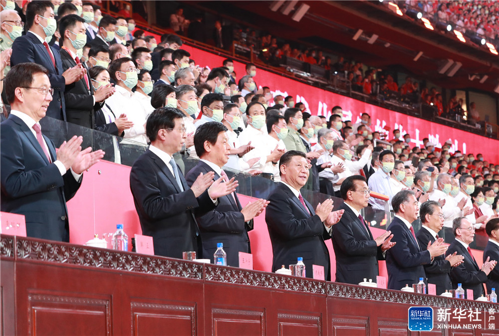 6月28日晚,慶祝中國共產(chǎn)黨成立100周年文藝演出《偉大征程》在國家體育場盛大舉行。習(xí)近平、李克強(qiáng)、栗戰(zhàn)書、汪洋、王滬寧、趙樂際、韓正、王岐山等黨和國家領(lǐng)導(dǎo)人,同約2萬名觀眾一起觀看演出。新華社記者 鞠鵬 攝