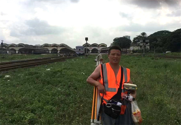 在中鐵一局三公司孟加拉帕德瑪大橋鐵路連接線項(xiàng)目,唐飛帶隊進(jìn)行前期控制網(wǎng)復(fù)測,因前期各項(xiàng)準(zhǔn)備工作還未到位,來到這個陌生的國度,唐飛面臨的是一個語言不通、無后勤保障、自然條件惡劣的環(huán)境。沒有翻譯,唐飛就用翻譯軟件翻譯生僻的英語和設(shè)計、監(jiān)理溝通;沒有合適的工人,唐飛和隊員們就自己挖坑、抬樁子;沒有食堂,他們連續(xù)吃了一個月的方便面午餐。孟加拉位于熱帶地區(qū),雨水多且來勢迅猛,雨來時,唐飛他們就在雨中堅持放線,雨太大實(shí)在無法觀測時,他們就站在雨中打著傘,用塑料袋保護(hù)著儀器,直到雨停后繼續(xù)觀測。