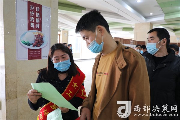 在山陽(yáng)煤礦職工食堂里,大家都正在忙碌著打飯,但有一個(gè)畫面卻溫暖著每一個(gè)人的心窩,記者用鏡頭捕捉到這樣一幅畫面,身為家屬協(xié)管員的趙翠芝,給每一位進(jìn)來的職工發(fā)放疫情知識(shí)宣傳單,并耐心的給她們講解其中的內(nèi)容以及疫情防護(hù)注意事項(xiàng)。