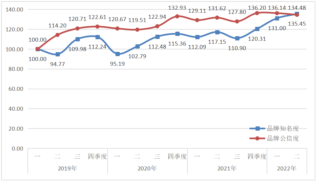 西鳳酒品牌傳播力指數(shù)2022年二季度運(yùn)行監(jiān)測顯示,西鳳酒品牌傳播力略有提升,達(dá)到134.96點(diǎn)。通過節(jié)日宣傳、交流拜訪、基酒項(xiàng)目建設(shè)等活動(dòng),西鳳酒品牌知名度和品牌公信度分別達(dá)到135.45點(diǎn)和134.48點(diǎn)。