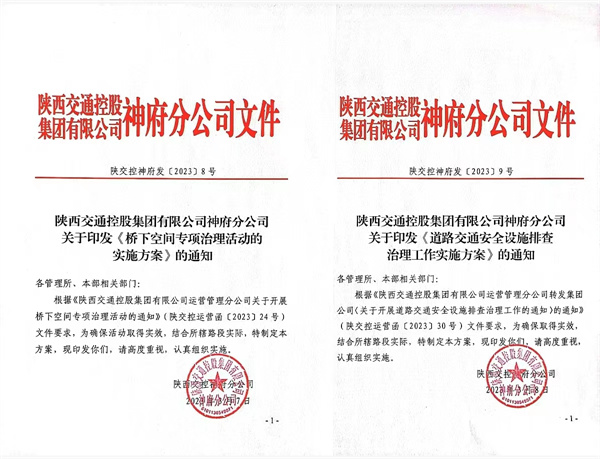 一、制定行動方案,強化組織領(lǐng)導(dǎo)。神府分公司按照上級工作要求,結(jié)合所轄道路實際,分別制定了《道路交通安全設(shè)施排查治理工作實施方案》、《橋下空間專項治理活動實施方案》,成立領(lǐng)導(dǎo)小組,明確任務(wù)分工,層層壓實責(zé)任,確保專項行動順利開展。