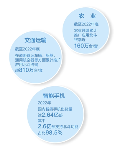 從北斗一號到北斗三號,從覆蓋亞太到服務(wù)全球,作為重要的新型基礎(chǔ)設(shè)施,北斗系統(tǒng)深度賦能各行各業(yè),成為經(jīng)濟(jì)社會發(fā)展的時(shí)空基石。2022年,我國衛(wèi)星導(dǎo)航與位置服務(wù)產(chǎn)業(yè)總體產(chǎn)值超過5000億元,產(chǎn)生顯著經(jīng)濟(jì)效益。