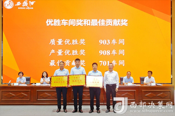 會(huì)上,張周虎宣讀了《關(guān)于對(duì)2022—2023基酒生產(chǎn)周期產(chǎn)質(zhì)量勞動(dòng)競(jìng)賽獲獎(jiǎng)車(chē)間、班組進(jìn)行表彰獎(jiǎng)勵(lì)的決定》。與會(huì)領(lǐng)導(dǎo)為受表彰的獲獎(jiǎng)車(chē)間、班組頒發(fā)獎(jiǎng)牌。