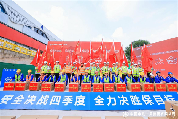 9月22日,中鐵一局一公司2023年“大干一百天 決勝四季度 沖刺全年任務(wù)目標(biāo)”勞動(dòng)競(jìng)賽誓師大會(huì),在深大城際項(xiàng)目白坭坑站施工現(xiàn)場(chǎng)舉行,并視頻連線至公司所屬各在建項(xiàng)目同步啟動(dòng)。