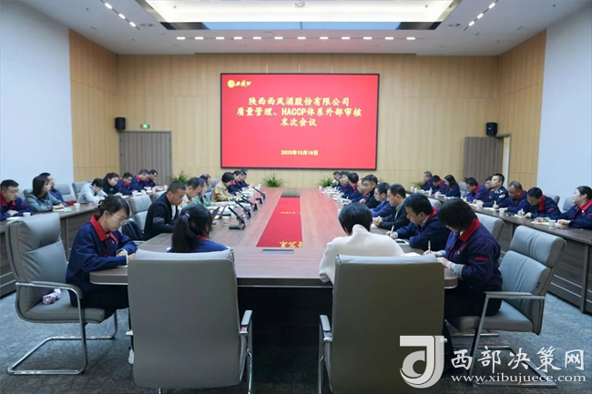 西部決策網(wǎng)訊(記者劉玉 韓宗憲 通訊員 雒丹 馬迪)10月16日至18日,中國方圓標志認證集團有限公司陜西審核中心對西鳳股份公司進行了2023年質(zhì)量管理、HACCP體系年度監(jiān)督審核。西鳳股份公司總工程師馮雅芳出席會議并講話,審核組專家、西鳳股份公司相關(guān)單位負責人參加會議,會議由審核組組長孫典鋒主持。
