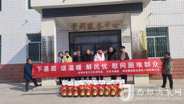 西部決策網(wǎng)訊(記者帥華鋒 張隴峰)1月29日,寶雞市為民書畫院與陜西耀誠展業(yè)建筑工程公司一行多人來到千陽縣草碧鎮(zhèn)寇家河村慰問當?shù)乩щy群眾。