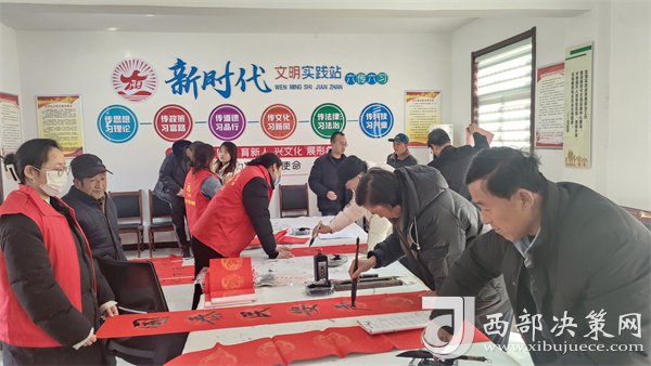 書畫院院長王偉明還組織和帶領(lǐng)副院長張維忠,張禮全,劉明,謝和平等書畫家,為廣大村民義務(wù)書寫春聯(lián)。