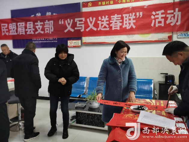 西部決策網(wǎng)訊(記者帥華鋒 通訊員 李文)近日,民盟眉縣支部發(fā)揚(yáng)組織優(yōu)秀傳統(tǒng),在新年來臨之際,分別在省戒毒所、縣政府門前、齊鎮(zhèn)齊西村,組織盟員開展“義寫義送春聯(lián)”系列活動(dòng)。眉縣人大常委會(huì)副主任、民盟眉縣支部主委郭杜鵑參與活動(dòng)。