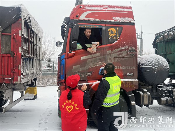 在各收費(fèi)站,工作人員也熱火朝天、行動(dòng)起來(lái),大家齊力清除廣場(chǎng)、車道積雪,做好交通管制解釋。志愿者們配足熱水、常用藥品和簡(jiǎn)易維修工具等,為過(guò)往司乘開展出行引導(dǎo)和便民服務(wù),幫助司機(jī)解決困難。同時(shí),為滯留的司乘朋友提供食物和休息,讓他們?cè)诤涠粘陨蠠狎v騰的飯、感受到來(lái)自榆靖人的溫度。