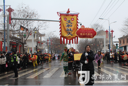 集中展演之后,全省各地社火與隴縣裝扮的百面旗林、百面鼓隊(duì)、百人馬社火、百人少兒鑼鼓、百人少兒社火、百人地臺社火和特色社火、車社火、高芯社火方陣沿縣城迎賓大道--東大街--西門口--新建路--千邑大橋進(jìn)行巡游,讓大家感受了社火的獨(dú)特魅力,為大家送去新春的祝福。