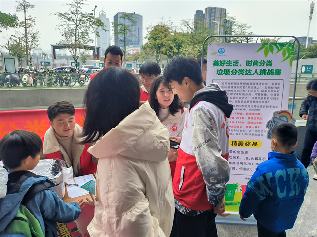 此次志愿服務(wù)活動采用現(xiàn)場教學(xué)和有趣的垃圾分類挑戰(zhàn)賽等方式,向市民傳播垃圾分類的科學(xué)知識和綠色環(huán)保的生活理念。垃圾分類達(dá)人挑戰(zhàn)賽現(xiàn)場氣氛熱烈,答題挑戰(zhàn)隊(duì)伍排成了長龍,每位參與者都躍躍欲試、反復(fù)操練,期望在分類游戲挑戰(zhàn)賽中取得高分和心儀的獎品。
