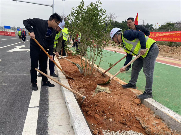 “在工地上開展植樹活動(dòng),綠化周邊環(huán)境,提高周邊居民生活質(zhì)量,建設(shè)佛山有軌電車綠色示范工程,給南海區(qū)里水人民提供交上一份滿意答卷”該項(xiàng)目黨支部副書記吳俊榮說(shuō)道。