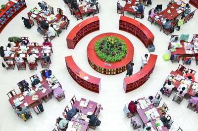 學(xué)生們在北京外國語大學(xué)圖書館內(nèi)閱讀。新華社發(fā)