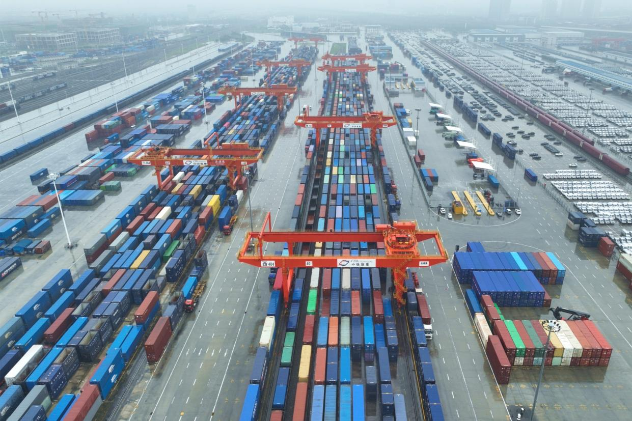 一排排集裝箱疊放整齊,大型龍門吊巨臂揮舞,集裝箱卡車往來穿梭……走進西安國際港站,貨物運輸繁忙而有序。近日,隨著最后一個集裝箱吊裝至中歐班列上,中哈雙方合作共建的中歐班列哈薩克斯坦西安碼頭正式投入運營。滿載日用百貨、機械設備和新能源汽車等商品的中歐班列,一路向西,經(jīng)哈薩克斯坦、跨越里海,最終抵達阿塞拜疆巴庫。